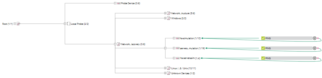 When using the auto-discovery function, the Ping Sensor on a device is by default set as the master object for this device. This means that monitoring for the entire device is paused if the Ping sensor is in Down status or in Paused status caused by another dependency. Usually, it makes little sense to monitor any other parameters while the Ping sensor indicates that the device can't even be reached.