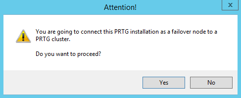 - Click this button to add this installation to an existing cluster that already has a Master Node. The current PRTG core server will then be a Failover Node in the cluster.