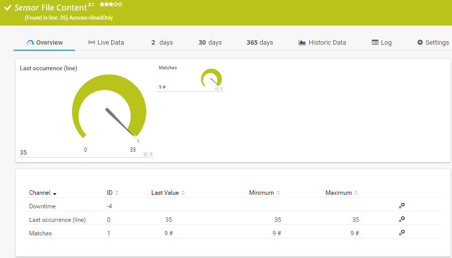 - Go into warning status when string is found: The sensor will show a Warning status if there is a match. Otherwise it will remain in Up status.