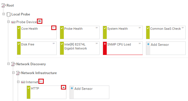 By default, a Probe Device is created in the device tree on the local probe or hosted probe. It represents the probe system running with your PRTG installation. PRTG automatically monitors the system health of the core server and each probe to discover overloading situations that may distort monitoring results. To monitor the system status of the probe computer, PRTG automatically creates a few sensors:
