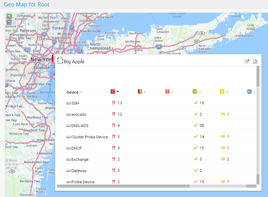 On the geographical maps, the different location icons show the overall status at this location by using a color code. Following, you can see all possible location states in order of their hierarchy: