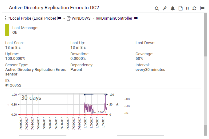 Hover Menu Example: Active Directory Replication Errors Sensor