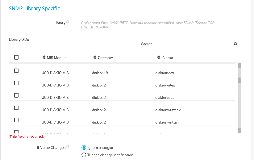 Select the desired counters and click Save. PRTG will now create sensors based on the OID types of the selected entries.