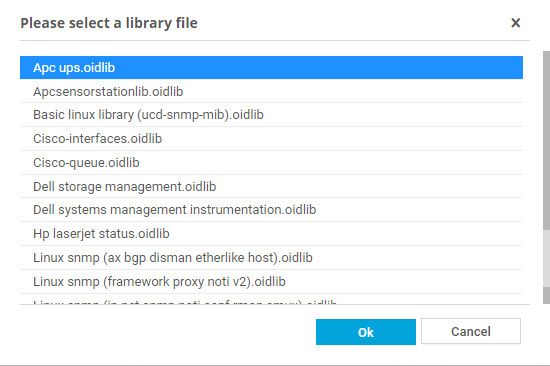 The filenames on the list indicate the likely purpose. Select a name that appears appropriate for your device (for example, choose an MIB file that you imported before) and confirm via OK. Often, the Paessler common oid library.oidlib is a good start.